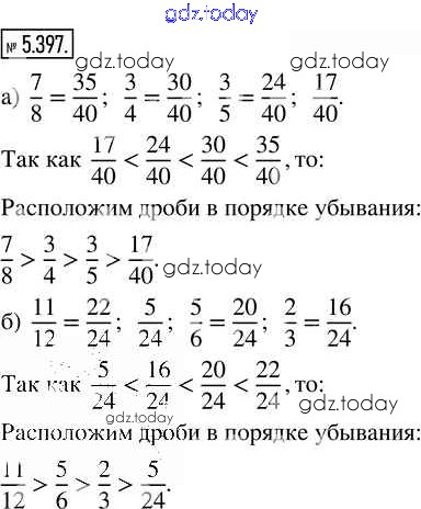 Ответы к Глава 5. Обыкновенные дроби Часть 2 (решение) 5.397 Учебнику по Математике для 5 класса Виленкин, Жохов Просвещение 2021