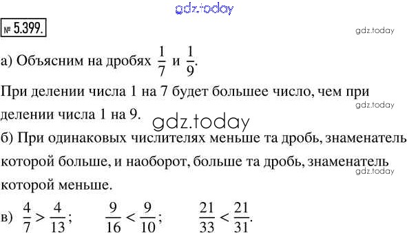На страницах сайта gdz.today вы найдете учебный и вспомогательный материал, направленный на улучшения знаний школьной программы. ГДЗ - онлайн мир знаний Глава 5. Обыкновенные дроби Часть 2 (решение) 5.399 Учебнику по Математике для 5 класса Виленкин, Жохов Просвещение 2021