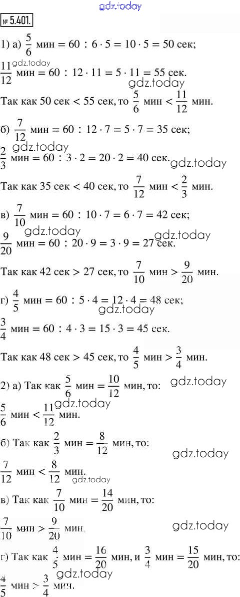 На страницах сайта gdz.today вы найдете учебный и вспомогательный материал, направленный на улучшения знаний школьной программы. ГДЗ - онлайн мир знаний Глава 5. Обыкновенные дроби Часть 2 (решение) 5.401 Учебнику по Математике для 5 класса Виленкин, Жохов Просвещение 2021