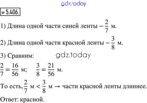 Ответы к Глава 5. Обыкновенные дроби Часть 2 (решение) 5.406 Учебнику по Математике для 5 класса Виленкин, Жохов Просвещение 2021