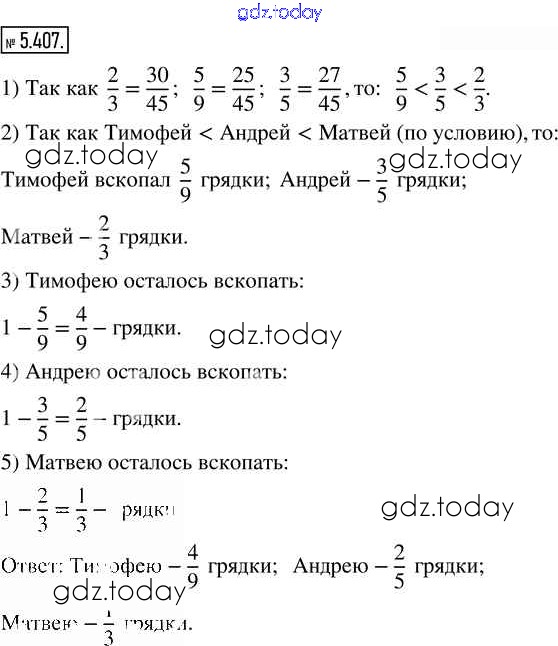 Ответы к Глава 5. Обыкновенные дроби Часть 2 (решение) 5.407 Учебнику по Математике для 5 класса Виленкин, Жохов Просвещение 2021