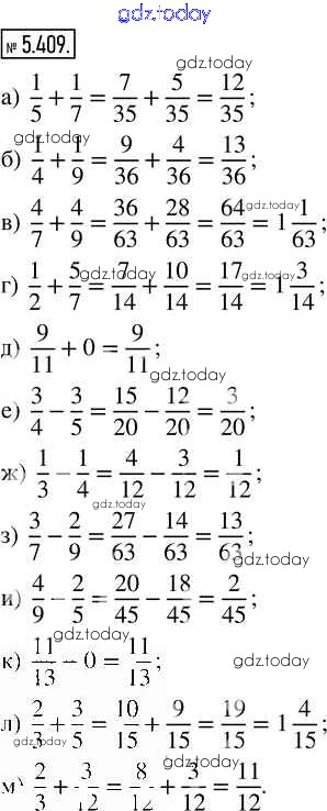 Ответы к Глава 5. Обыкновенные дроби Часть 2 (решение) 5.409 Учебнику по Математике для 5 класса Виленкин, Жохов Просвещение 2021