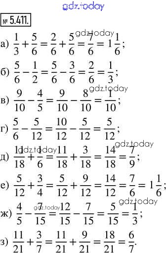 Ответы к Глава 5. Обыкновенные дроби Часть 2 (решение) 5.411 Учебнику по Математике для 5 класса Виленкин, Жохов Просвещение 2021