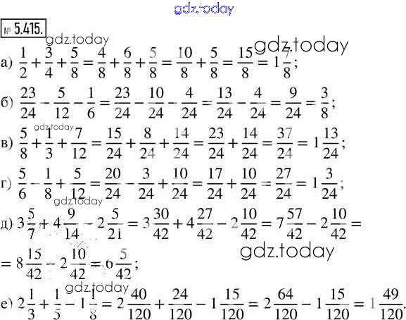 Ответы к Глава 5. Обыкновенные дроби Часть 2 (решение) 5.415 Учебнику по Математике для 5 класса Виленкин, Жохов Просвещение 2021
