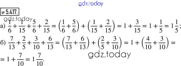 Ответы к Глава 5. Обыкновенные дроби Часть 2 (решение) 5.417 Учебнику по Математике для 5 класса Виленкин, Жохов Просвещение 2021