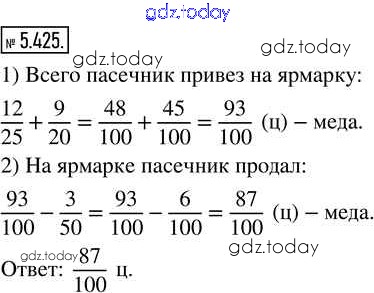 Ответы к Глава 5. Обыкновенные дроби Часть 2 (решение) 5.425 Учебнику по Математике для 5 класса Виленкин, Жохов Просвещение 2021