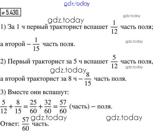 Ответы к Глава 5. Обыкновенные дроби Часть 2 (решение) 5.430 Учебнику по Математике для 5 класса Виленкин, Жохов Просвещение 2021