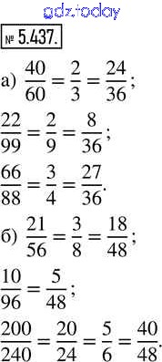 Ответы к Глава 5. Обыкновенные дроби Часть 2 (решение) 5.437 Учебнику по Математике для 5 класса Виленкин, Жохов Просвещение 2021