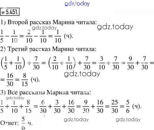 Ответы к Глава 5. Обыкновенные дроби Часть 2 (решение) 5.451 Учебнику по Математике для 5 класса Виленкин, Жохов Просвещение 2021