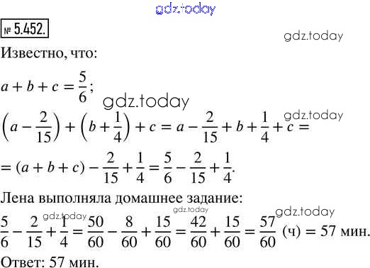 Ответы к Глава 5. Обыкновенные дроби Часть 2 (решение) 5.452 Учебнику по Математике для 5 класса Виленкин, Жохов Просвещение 2021