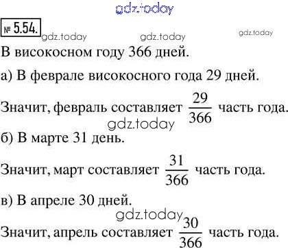 На страницах сайта gdz.today вы найдете учебный и вспомогательный материал, направленный на улучшения знаний школьной программы. ГДЗ - онлайн мир знаний Глава 5. Обыкновенные дроби Часть 2 (решение) 5.54 Учебнику по Математике для 5 класса Виленкин, Жохов Просвещение 2021