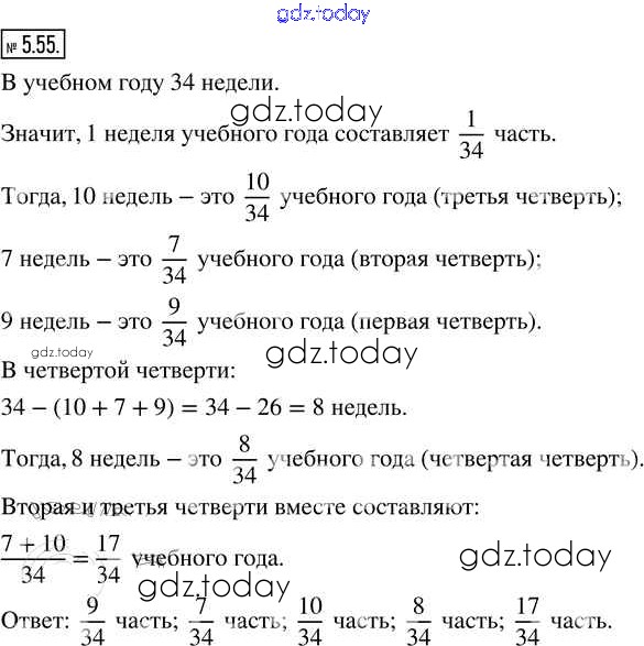 Ответы к Глава 5. Обыкновенные дроби Часть 2 (решение) 5.55 Учебнику по Математике для 5 класса Виленкин, Жохов Просвещение 2021