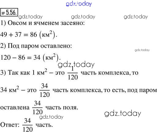 Ответы к Глава 5. Обыкновенные дроби Часть 2 (решение) 5.56 Учебнику по Математике для 5 класса Виленкин, Жохов Просвещение 2021