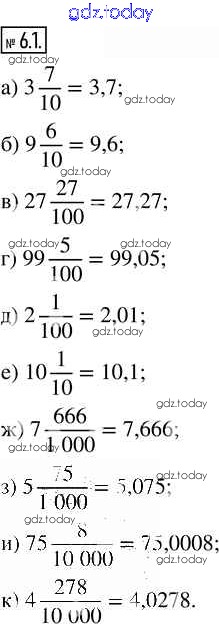 Ответы к Глава 6. Десятичные дроби Часть 2 (решение) 6.1 Учебнику по Математике для 5 класса Виленкин, Жохов Просвещение 2021