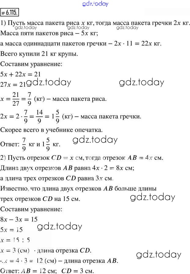 Ответы к Глава 6. Десятичные дроби Часть 2 (решение) 6.115 Учебнику по Математике для 5 класса Виленкин, Жохов Просвещение 2021