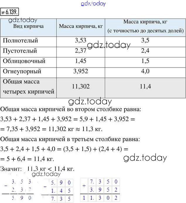 На страницах сайта gdz.today вы найдете учебный и вспомогательный материал, направленный на улучшения знаний школьной программы. ГДЗ - онлайн мир знаний Глава 6. Десятичные дроби Часть 2 (решение) 6.139 Учебнику по Математике для 5 класса Виленкин, Жохов Просвещение 2021