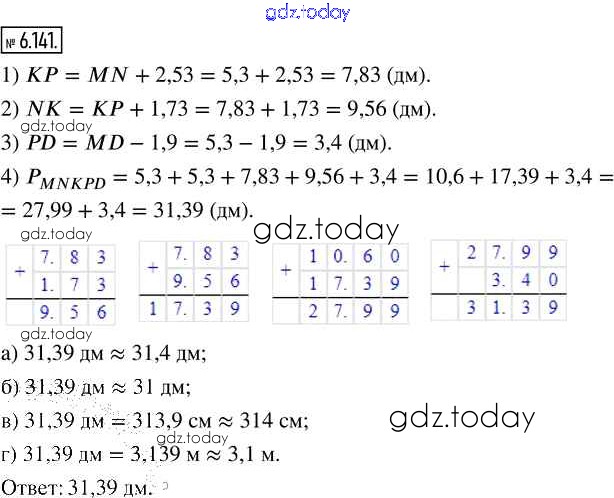 Ответы к Глава 6. Десятичные дроби Часть 2 (решение) 6.141 Учебнику по Математике для 5 класса Виленкин, Жохов Просвещение 2021