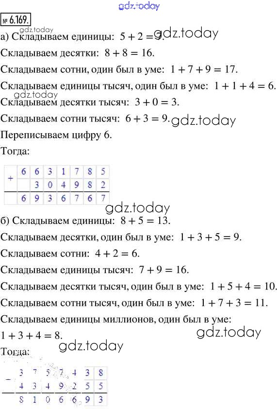 На страницах сайта gdz.today вы найдете учебный и вспомогательный материал, направленный на улучшения знаний школьной программы. ГДЗ - онлайн мир знаний Глава 6. Десятичные дроби Часть 2 (решение) 6.169 Учебнику по Математике для 5 класса Виленкин, Жохов Просвещение 2021
