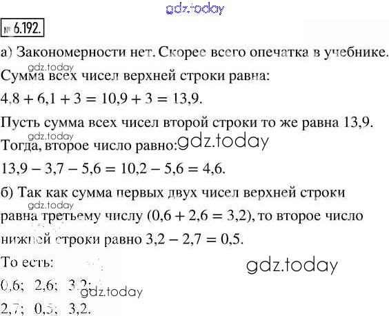 Ответы к Глава 6. Десятичные дроби Часть 2 (решение) 6.192 Учебнику по Математике для 5 класса Виленкин, Жохов Просвещение 2021