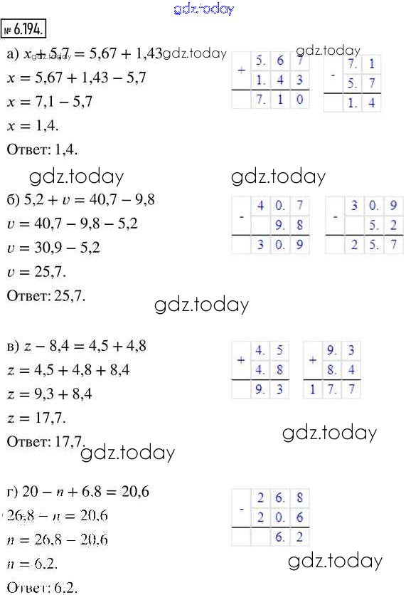 Ответы к Глава 6. Десятичные дроби Часть 2 (решение) 6.194 Учебнику по Математике для 5 класса Виленкин, Жохов Просвещение 2021