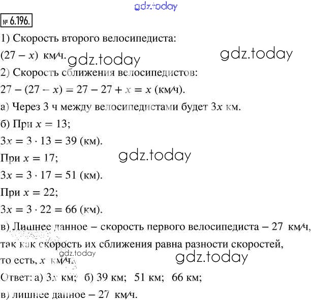 На страницах сайта gdz.today вы найдете учебный и вспомогательный материал, направленный на улучшения знаний школьной программы. ГДЗ - онлайн мир знаний Глава 6. Десятичные дроби Часть 2 (решение) 6.196 Учебнику по Математике для 5 класса Виленкин, Жохов Просвещение 2021