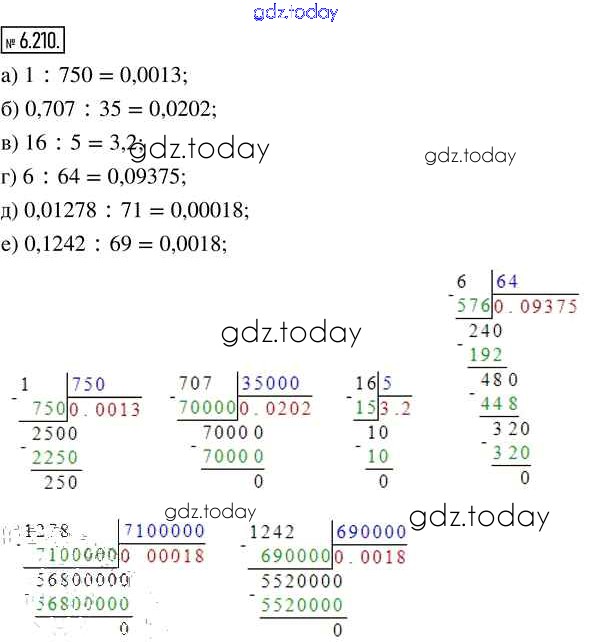 Ответы к Глава 6. Десятичные дроби Часть 2 (решение) 6.210 Учебнику по Математике для 5 класса Виленкин, Жохов Просвещение 2021
