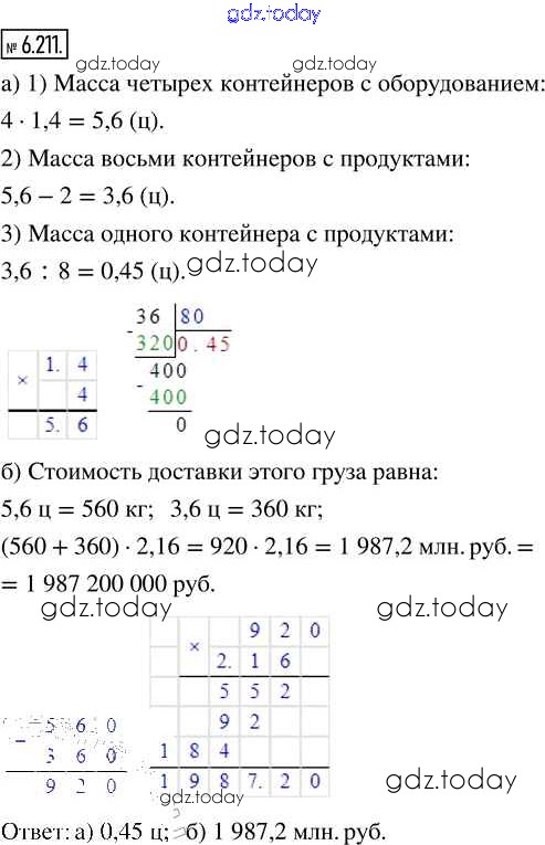 Ответы к Глава 6. Десятичные дроби Часть 2 (решение) 6.211 Учебнику по Математике для 5 класса Виленкин, Жохов Просвещение 2021