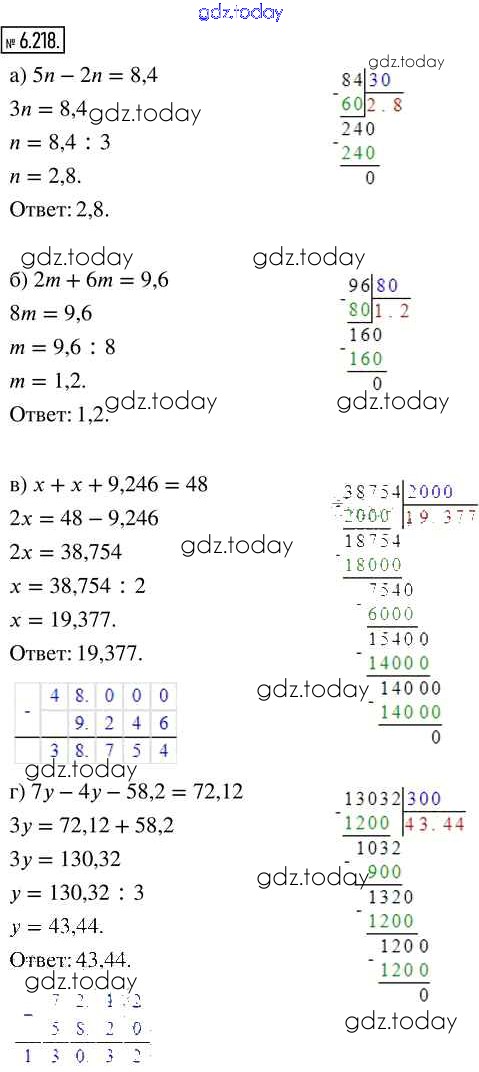 Ответы к Глава 6. Десятичные дроби Часть 2 (решение) 6.218 Учебнику по Математике для 5 класса Виленкин, Жохов Просвещение 2021