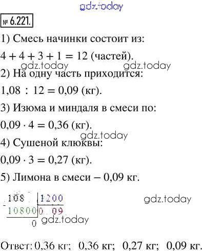 Ответы к Глава 6. Десятичные дроби Часть 2 (решение) 6.221 Учебнику по Математике для 5 класса Виленкин, Жохов Просвещение 2021