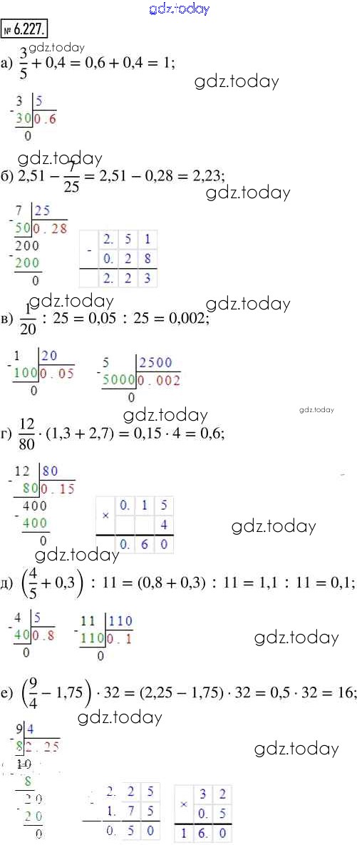 Ответы к Глава 6. Десятичные дроби Часть 2 (решение) 6.227 Учебнику по Математике для 5 класса Виленкин, Жохов Просвещение 2021
