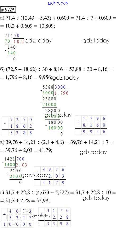 Ответы к Глава 6. Десятичные дроби Часть 2 (решение) 6.229 Учебнику по Математике для 5 класса Виленкин, Жохов Просвещение 2021