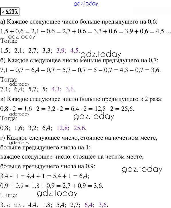 Ответы к Глава 6. Десятичные дроби Часть 2 (решение) 6.235 Учебнику по Математике для 5 класса Виленкин, Жохов Просвещение 2021
