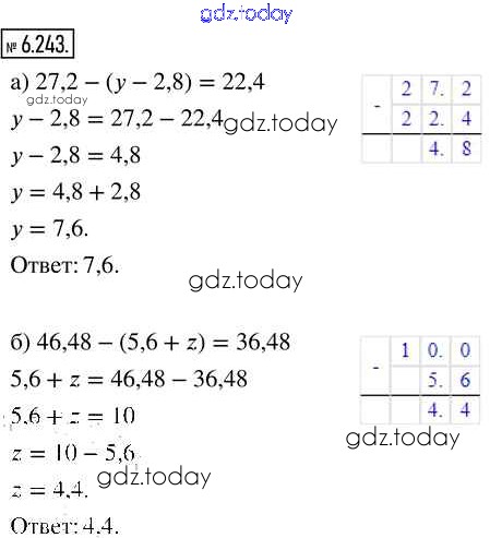Ответы к Глава 6. Десятичные дроби Часть 2 (решение) 6.243 Учебнику по Математике для 5 класса Виленкин, Жохов Просвещение 2021