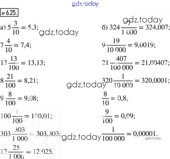На страницах сайта gdz.today вы найдете учебный и вспомогательный материал, направленный на улучшения знаний школьной программы. ГДЗ - онлайн мир знаний Глава 6. Десятичные дроби Часть 2 (решение) 6.25 Учебнику по Математике для 5 класса Виленкин, Жохов Просвещение 2021