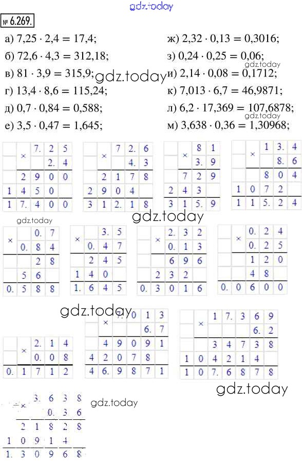 Ответы к Глава 6. Десятичные дроби Часть 2 (решение) 6.269 Учебнику по Математике для 5 класса Виленкин, Жохов Просвещение 2021