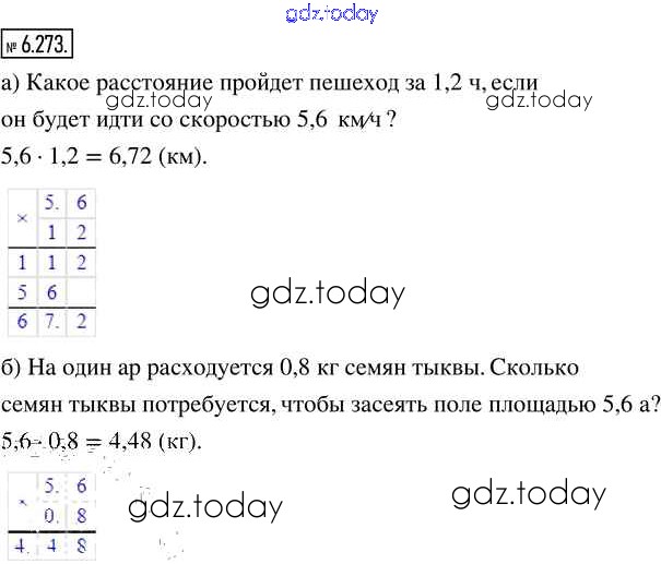 Ответы к Глава 6. Десятичные дроби Часть 2 (решение) 6.273 Учебнику по Математике для 5 класса Виленкин, Жохов Просвещение 2021