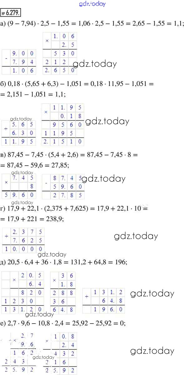 Ответы к Глава 6. Десятичные дроби Часть 2 (решение) 6.279 Учебнику по Математике для 5 класса Виленкин, Жохов Просвещение 2021