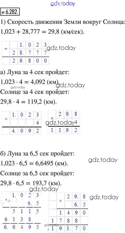 На страницах сайта gdz.today вы найдете учебный и вспомогательный материал, направленный на улучшения знаний школьной программы. ГДЗ - онлайн мир знаний Глава 6. Десятичные дроби Часть 2 (решение) 6.282 Учебнику по Математике для 5 класса Виленкин, Жохов Просвещение 2021