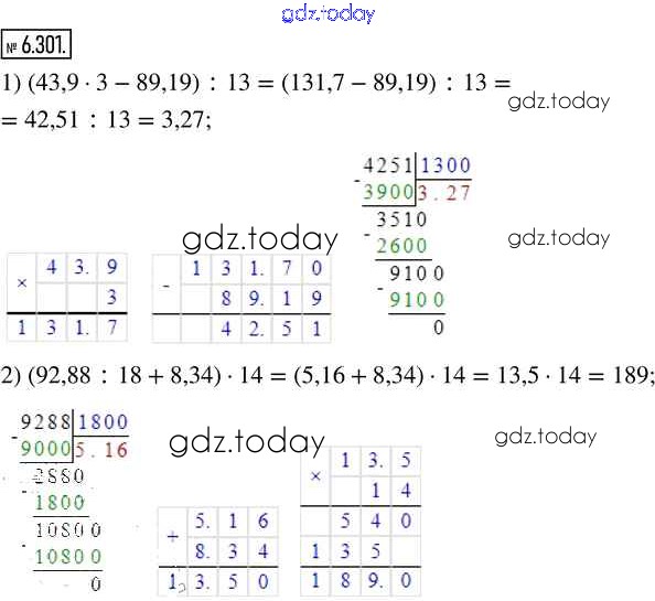 Ответы к Глава 6. Десятичные дроби Часть 2 (решение) 6.301 Учебнику по Математике для 5 класса Виленкин, Жохов Просвещение 2021