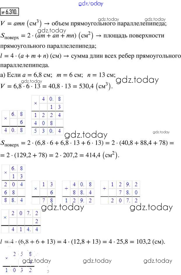 На страницах сайта gdz.today вы найдете учебный и вспомогательный материал, направленный на улучшения знаний школьной программы. ГДЗ - онлайн мир знаний Глава 6. Десятичные дроби Часть 2 (решение) 6.310 Учебнику по Математике для 5 класса Виленкин, Жохов Просвещение 2021