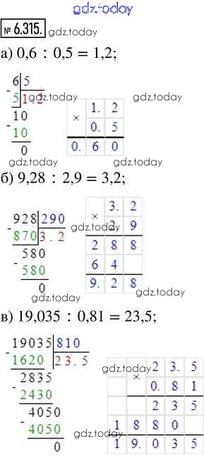 Ответы к Глава 6. Десятичные дроби Часть 2 (решение) 6.315 Учебнику по Математике для 5 класса Виленкин, Жохов Просвещение 2021