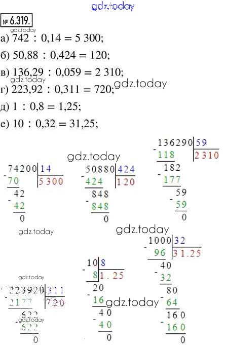 Ответы к Глава 6. Десятичные дроби Часть 2 (решение) 6.319 Учебнику по Математике для 5 класса Виленкин, Жохов Просвещение 2021