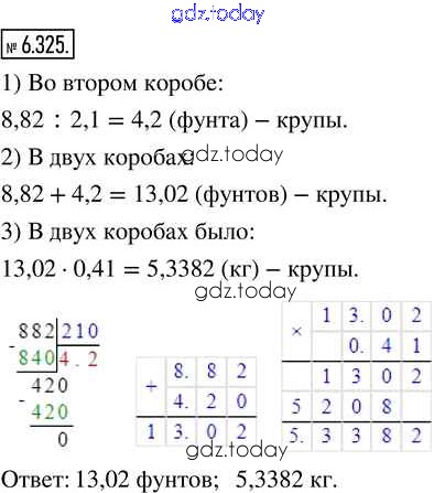Ответы к Глава 6. Десятичные дроби Часть 2 (решение) 6.325 Учебнику по Математике для 5 класса Виленкин, Жохов Просвещение 2021