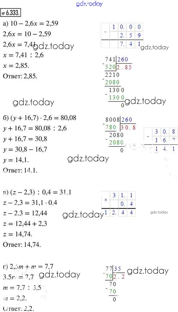 На страницах сайта gdz.today вы найдете учебный и вспомогательный материал, направленный на улучшения знаний школьной программы. ГДЗ - онлайн мир знаний Глава 6. Десятичные дроби Часть 2 (решение) 6.333 Учебнику по Математике для 5 класса Виленкин, Жохов Просвещение 2021