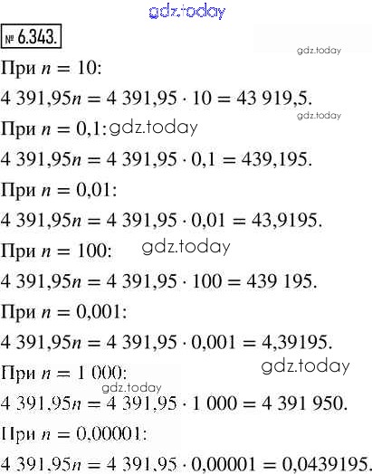 Ответы к Глава 6. Десятичные дроби Часть 2 (решение) 6.343 Учебнику по Математике для 5 класса Виленкин, Жохов Просвещение 2021