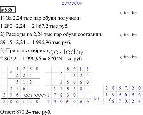 Ответы к Глава 6. Десятичные дроби Часть 2 (решение) 6.351 Учебнику по Математике для 5 класса Виленкин, Жохов Просвещение 2021