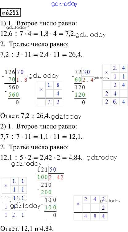 Ответы к Глава 6. Десятичные дроби Часть 2 (решение) 6.355 Учебнику по Математике для 5 класса Виленкин, Жохов Просвещение 2021