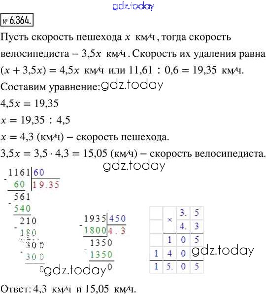 Ответы к Глава 6. Десятичные дроби Часть 2 (решение) 6.364 Учебнику по Математике для 5 класса Виленкин, Жохов Просвещение 2021