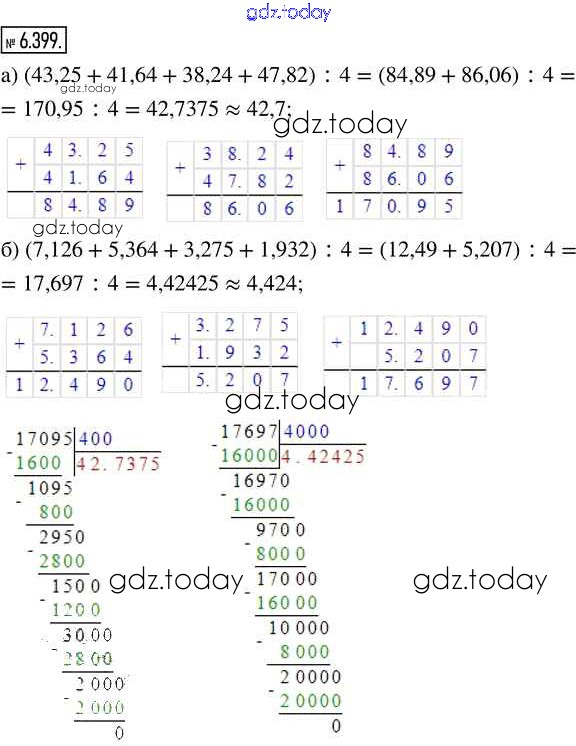 Ответы к Глава 6. Десятичные дроби Часть 2 (решение) 6.399 Учебнику по Математике для 5 класса Виленкин, Жохов Просвещение 2021