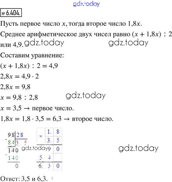 Ответы к Глава 6. Десятичные дроби Часть 2 (решение) 6.404 Учебнику по Математике для 5 класса Виленкин, Жохов Просвещение 2021